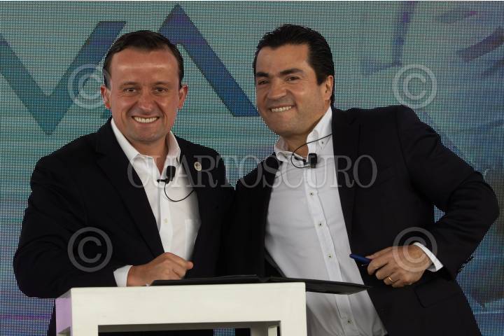 CIUDAD DE MÉXICO, 06DICIEMBRE2023.- Mikel Arriola, presidente ejecutivo de la Liga BBVA MX, y Eduardo Osuna, Vicepresidente y Director General de BBVA México, encabezaron la firma de renovación de Patrocinio entre la LIGA BBVA MX y BBVA. FOTO: GALO CAÑAS/CUARTOSCURO.COM