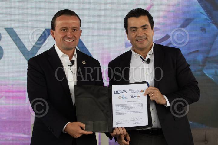 Mikel Arriola, presidente de la Liga MX, y Eduardo Osuna, Vicepresidente y Director General de BBVA México, ratificaron a la institución bancaria como el patrocinador master de la Liga MX BBVA.