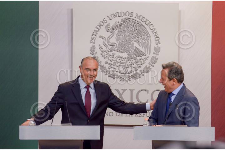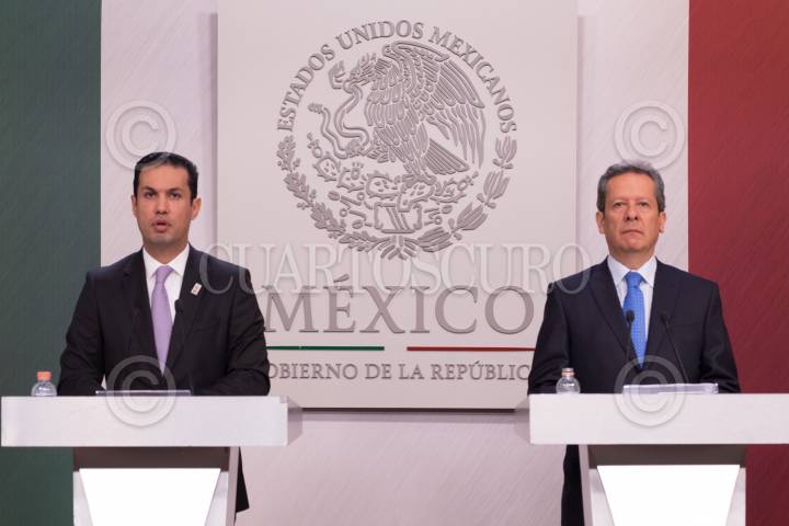 CIUDAD DE MÉXICO, 10JULIO2018.- Tuffic Miguel Ortega, director general del Seguro Social y Eduardo Sánchez Hernández, vocero del Gobierno de la República, ofrecieron conferencia de prensa para hablar sobre los aspectos y puntos de trabajo del sexenio en curso en el instituto Mexicano del Seguro Social (IMSS). FOTO: ANDREA MURCIA /CUARTOSCURO.COM