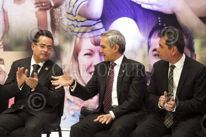 MÉXICO, D.F., 18ENERO2016.- Eduardo Santillán, presidente de la Comisión de Gobierno de la ALDF, Manuel Granados, consejero Jurídica y de Servicios Legales del DF, Miguel Ángel Mancera, Jefe de Gobierno, y Edgar Amador, secretario de Finanzas del DF, durante la firma y publicación de instrumentos que condonan y subsidian el pago de impuesto predial a los capitalinos, en ceremonia realizada en el Antiguo Palacio del Ayuntamiento. FOTO: MOISÉS PABLO /CUARTOSCURO.COM
