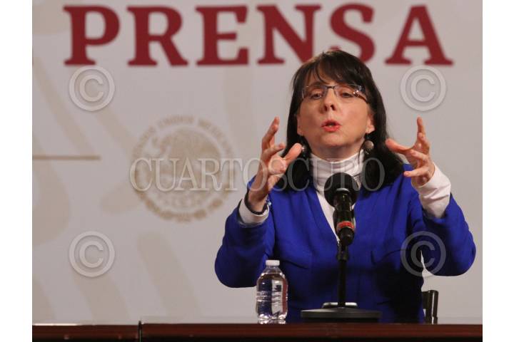 María Elena Álvarez, durante la ronda de preguntas en la conferencia COVID-19 en Palacio Nacional. FOTO: ROGELIO MORALES /CUARTOSCURO.COM