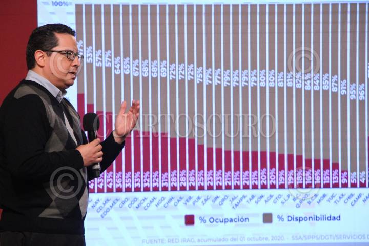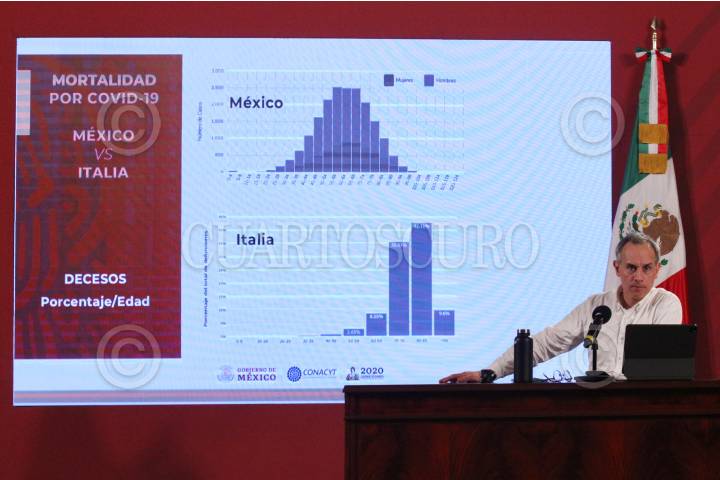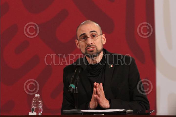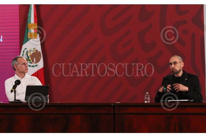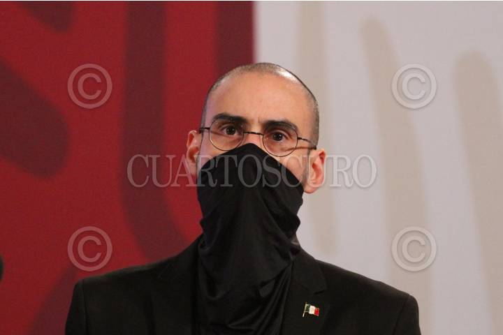 José Luis Alomía Zegarra, durante la presentación de los datos sobre COVID-19 en Palacio Nacional. FOTO: ROGELIO MORALES /CUARTOSCURO.COM