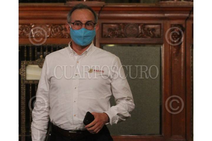 Eduardo Villegas durante la conferencia COVID-19 en el Salón Tesorería de Palacio Nacional. FOTO: ROGELIO MORALES /CUARTOSCURO.COM