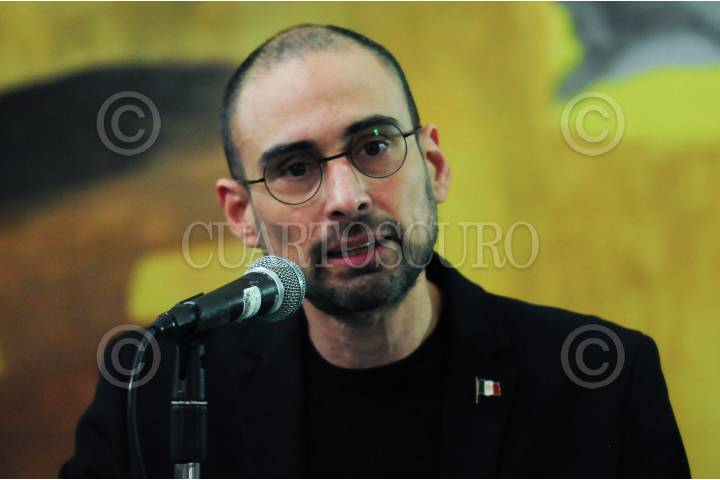 Eduardo Villegas, coordinador de Memoria Histórica y Cultural de México, durante la Develación del Billete del Sorteo Superior 2653 alusivo al 10º Aniversario luctuoso de Carlos Monsiváis