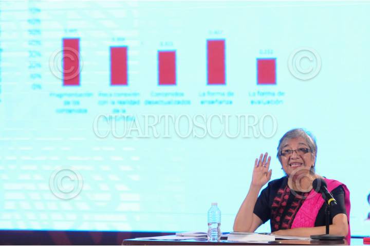 Leticia Ramírez, titular de la SEP, durante la conferencia.