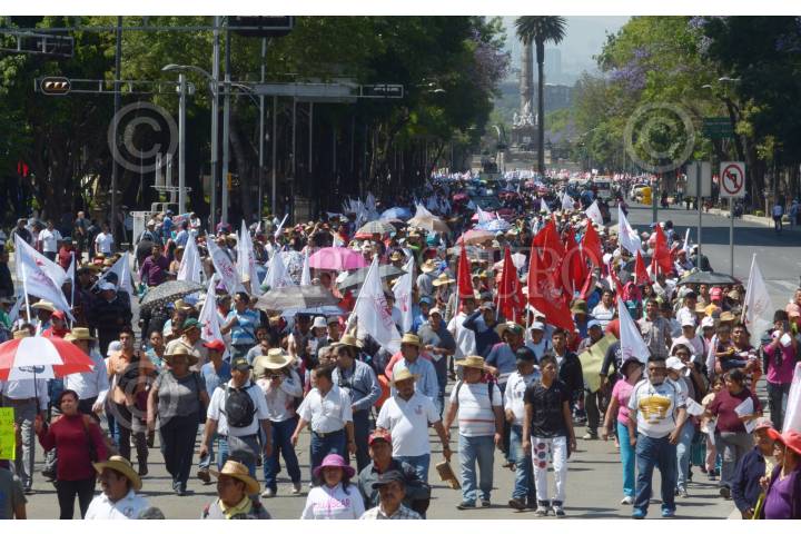 MÉXICO, D.F., 05MARZZO2015.-Cientos de Antorchistas marcharon sobre Reforma rumbo a la Secretaría de Gobernación, para pedir apoyos al campo y oportunidades educativas, lo que causo un gran caos vial y significo que cientos de automovilistas quedaran varados. FOTO: ARMANDO MONROY /CUARTOSCURO.COM