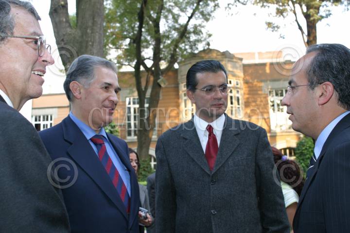 México, D.F. 25 OCTUBRE 2004.- Manuel Camacho Solis, diputado perredista, Diego Valadés, director del Instituto de Investigaciones Jurídicas de la UNAM, Alonso Lujambio, ex consejero del IFE y Felipe Calderón Hinojosa, pre candidato panista a la presidencia, a su llegada al Foro ¨ Del sufragio Efectivo a la Democracia Efectiva¨, propuestas para una Reforma Institucional, el cual se llevo a cabo en la Casa Lamm. FOTO: Sandra Perdomo/CUARTOSCURO.COM