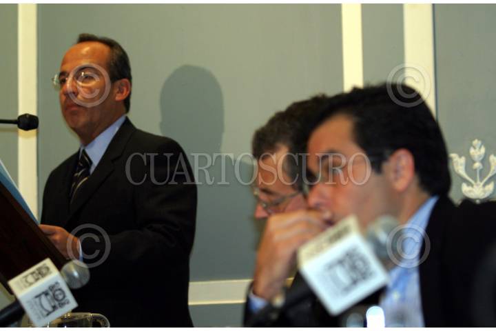 México, D.F. 25 OCTUBRE 2004.- Felipe Calderón Hinojosa, pre candidato panista a la presidencia de la República, encabezó el foro " Del sufragio Efectivo a la Democracia Efectiva¨, propuestas para una Reforma Institucional, el cual se llevo a cabo en la Casa Lamm. FOTO: Sandra Perdomo/CUARTOSCURO.COM