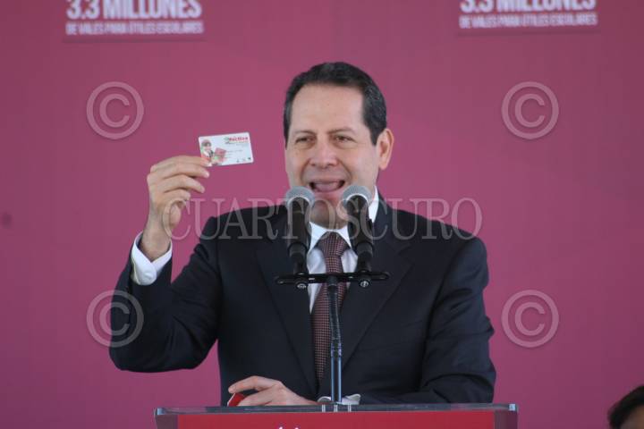 SAN SALVADOR ATENCO, ESTADO DE MÉXICO, 27ENERO2014.- Eruviel Ávila Villegas, Gobernador del Estado de México, arrancó, en la colonia Santa Rosa, perteneciente al municipio de Atenco, dio inicio a la entrega de la tarjeta La Efectiva para la compra de útiles escolares, que podrá usarse en más de 5 mil comercios a partir del próximo 8 de junio y los alumnos también podrán obtener descuentos en 10 mil establecimientos, como farmacias, cines, restaurantes, laboratorios clínicos, papelerías, entre otros, así como obtener el derecho al Seguro Escolar contra Accidentes. FOTO: GUILLERMO PEREA /CUARTOSCURO.COM