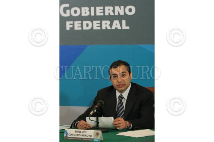 MÉXICO, D.F., 15JUNIO2010.- Ernesto Cordero Arroyo, Secretario de Hacienda, ofreció una rueda de prensa en Palacio Nacional para hablar sobre la regulación sobre efectivo en dólares. FOTO: IVÁN MENDEZ/CUARTOSCURO.COM