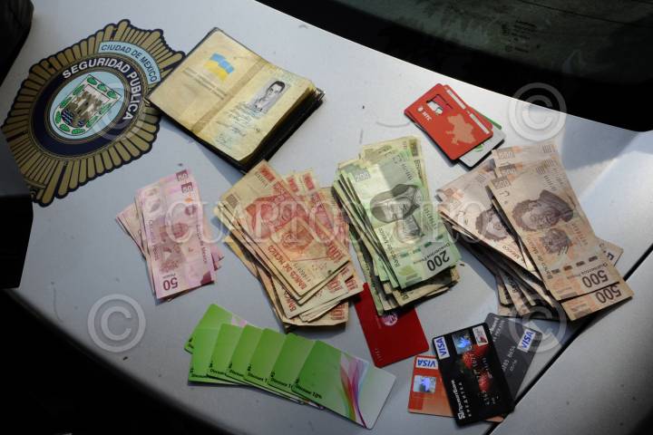 MÉXICO, D.F., 21ENERO2012.- Dos sujetos de origen ucraniano fueron detenidos cuando retiraban efectivo de cajeros automáticos con tarjetas clonadas. Los extranjeros fueron ubicados haciendo estos retiros en distintos bancos, por lo que elementos de la PBI en coordinación con elementos de la SSP, realizaron un operativo para lograr la detención de estos que portaban maletas pequeñas con mas de $50,000.00 pesos en efectivo y mas de 50 tarjetas apócrifas. FOTO: LUIS CARBAYO/CUARTOSCURO.COM