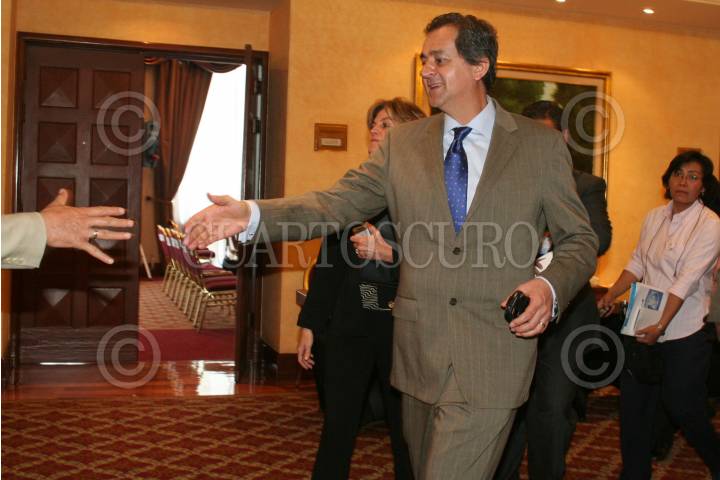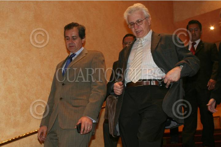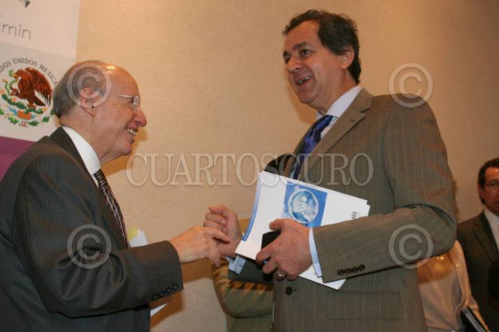 MÉXICO, D.F. 26MARZO2007.- El secretario de Medio Ambiente, Rafael Elvira Quezada y Fernando Tudel Abad al término de la presentación de avances del Programa Voluntario de Contabilidad y Reporte de Gases de Efecto Invernadero, que se llevò a cabo en un hotel de la ciudad. FOTO: PAOLA HIDALGO/CUARTOSCURO.COM
