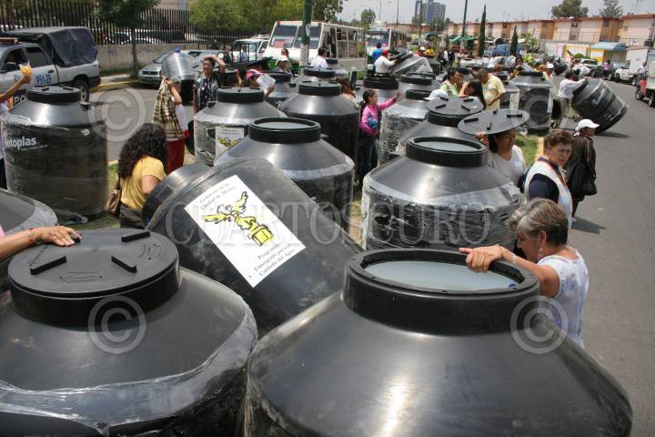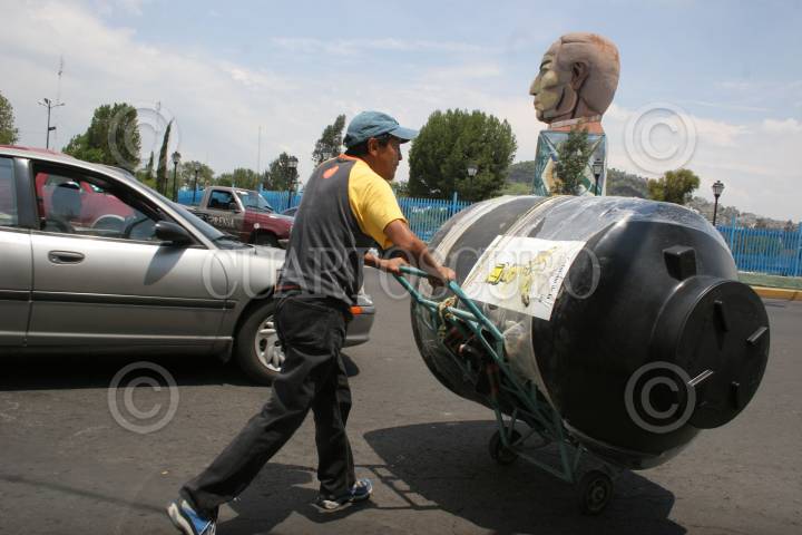 MEXICO D.F. 26AGOSTO2009.- Decenas de capitalinos de la delegación Iztapalapa, recibieron tinacos como parte del nuevo nuevo plan para contrarrestar los efectos de escasez de agua en la capital del país, este consiste en regalar tinacos de mil 100 litros de capacidad a familias de escasos recursos que viven en aquellas zonas donde es frecuente la falta del vital líquido, ya entregados los tinacos los iztapalapenses tuvieron que arreglárselas para trasportar estos tinacos a sus casas. FOTO:RICARDO CASTELAN/CUARTOSCURO.COM