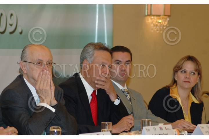 MÉXICO, D.F., 02DICIEMBRE2009.- Mario Molina, premio nobel de química; Gustavo Cardenas Monroy, secretario del Medio Ambiente del Estado de México; Miguel Ángel Toscano, comisionado federal para la protección contra riesgos sanitarios y Martha Delgado, secretaria del Medio Ambiente del Distrito Federal durante el Seminario Internacional sobre la Calidad del Aire y Efectos a la Salud. FOTO: RODOLFO ANGULO/CUARTOSCURO.COM