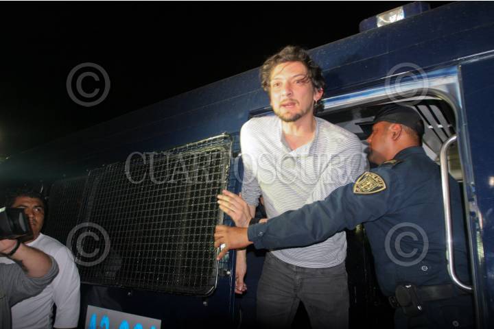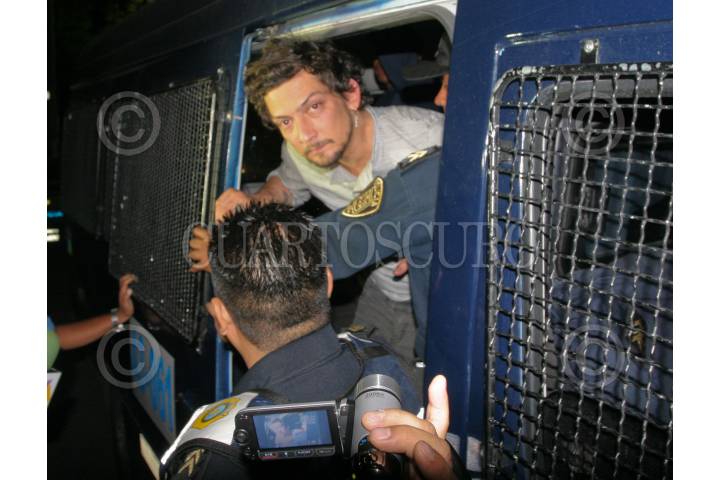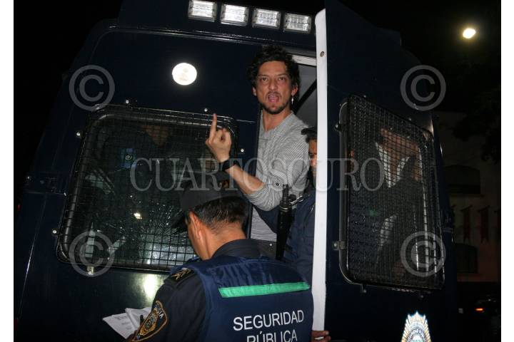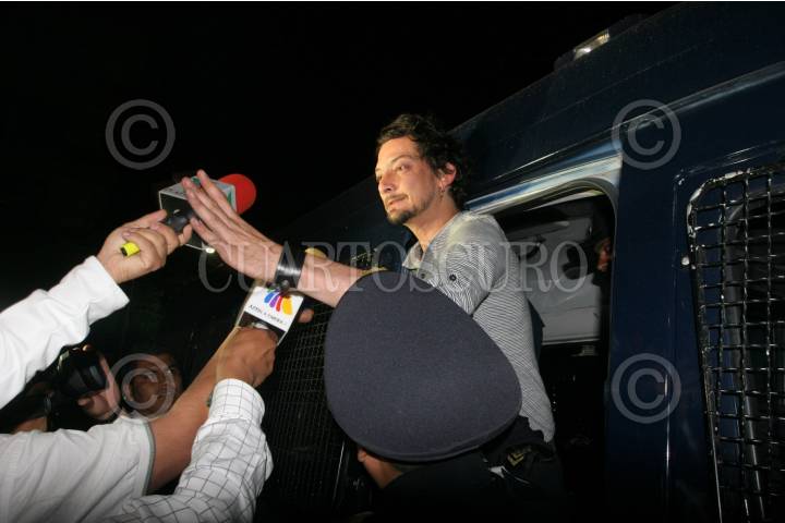 MÉXICO, D.F., 11JUNIO2010.- Leon Larregui, vocalista del grupo musical Zoe, fue detenido bajo los efectos de sustancias tóxicas y bebidas embriagantes en el punto del alcoholímetro ubicado en la esquina de Alfonso Reyes y Mazatlan en la colonia Condesa donde protagonizó disturbios y agresión a los policías así como a los medios de comunicación. FOTO: LUZ ACEVEDO/CUARTOSCURO.COM