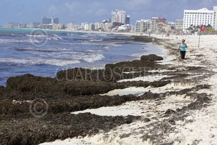 CANCÚN, QUINTANA ROO, 10AGOSTO2012.- Huevos de tortugas, caracoles,entre otras especies fueron las que se encontraron en un tramo de la costa de Cancún, tapizado por zargaso, tras el paso del huracán Ernesto por Quintana roo. Playa Gaviota Azul fue la zona hotelera mas afectada mientras trabajadores del ayuntamiento ya trabajan la zona afectada. FOTO: CSPHOTO /CUARTOSCURO.COM