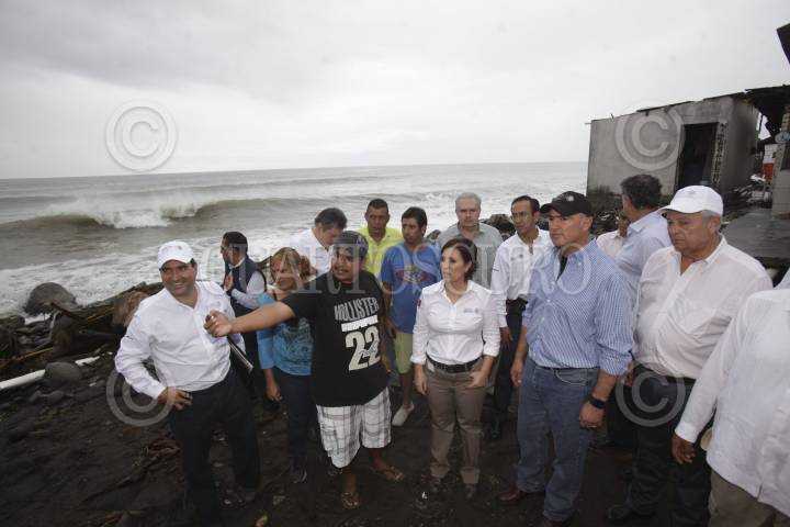 PLAYA PARAÍSO, COLIMA, 30OCTUBRE2015.- Rosario Robles, secretaria de Desarrollo Agrario Territorial y Urbano, y José Calzada Rovirosa, titular de la Sagarpa, recorrieron el malecón de Playa Paraíso, en donde constataron los daños ocasionados por el huracán Patricia en los comercios y restaurantes de la zona. FOTO: ANDRÉS YAÑEZ /CUARTOSCURO.COM