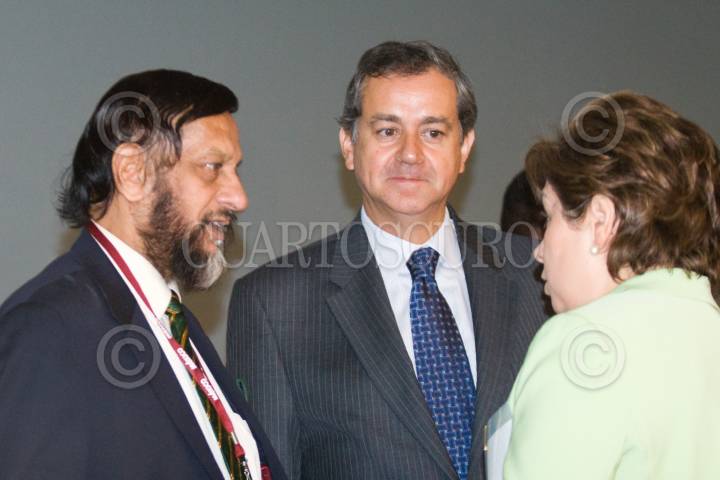 MÉXICO D.F. 28SEPTIEMBRE2010.- Patricia Espinoza Cantellanos, Secretaria de Relaciones Exteriores, acompañada de Georgina Kessel Martínez, Secretaria de Energía, Rafael Elvira Quesada Secretario de Medio Ambiente y Recursos Naturales y Rajendra K. Pachauri Presidente del Panel Intergubernamental de Cambio Climático de la ONU, encabezo la ceremonia de inauguración del Foro de Eficiencia Energética y Acceso, esto en las instalaciones de la Secretaria. FOTO: GUILLERMO PEREA/CUARTOSCURO.COM