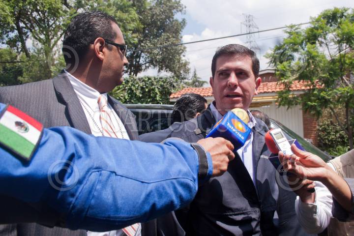 MÉXICO, D.F., 11AGOSTO2011.- Alfredo Cervantes Castillo, procurador de Justicia del Estado de México, acudió a la casa del poeta Efraín Bartolomé. luego de que ayer por la madrugada elementos de dicha procuraduría irrumpieran en el domicilio de la calle Conkal, número 226, colonia Torres de Padierna, en la delegación Tlalpan. FOTO: ISAAC ESQUIVEL/CUARTOSCURO.COM
