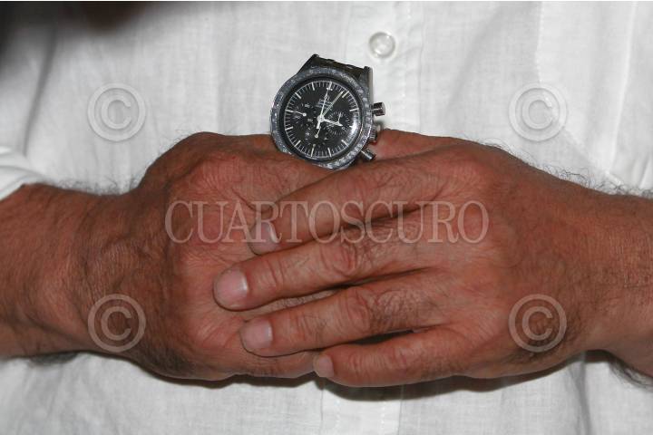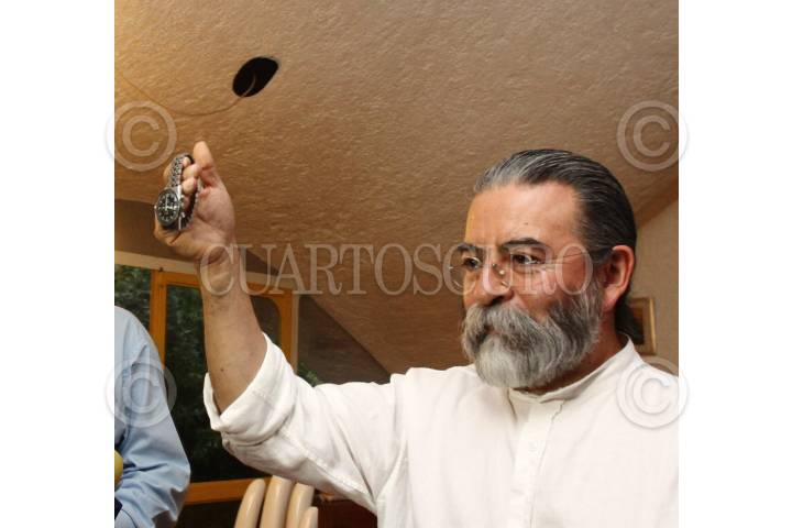 MÉXICO, D.F., 15AGOSTO2011.- El procurador mexiquense, Alfredo Castillo Cervantes, entregó en la casa del poeta Efraín Bartolomé el reloj que fue tomado durante el operativo para capturar al líder de "La Mano con ojos", Óscar Osvaldo García Montoya. FOTO: SAÚL LÓPEZCUARTOSCURO.COM
