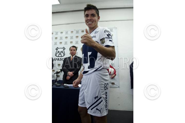 MÉXICO, D.F., 04ENERO2012.- Efraín Velarde, medio ofensivo de los Pumas de la Universidad Nacional Autónoma de México (UNAM), durante la conferencia de prensa después del entrenamiento el día de hoy a puerta cerrada en el estadio de Ciudad Universitaria. FOTO: MISAEL VALTIERRA/CUARTOSCURO.COM