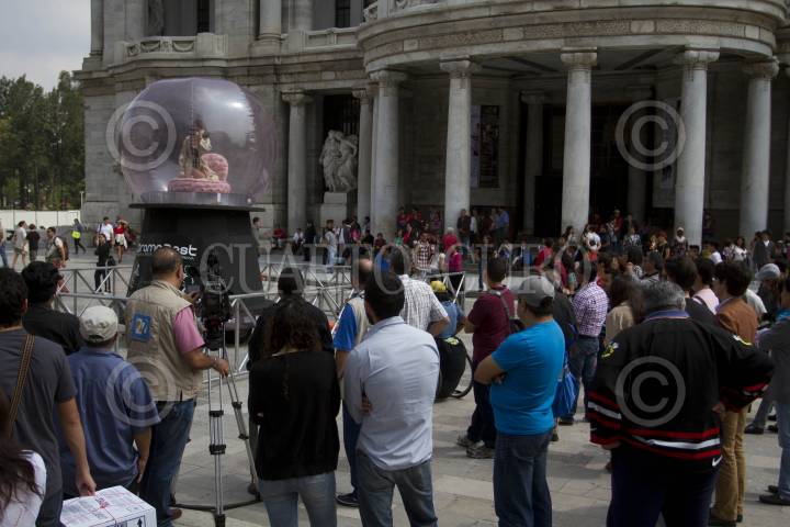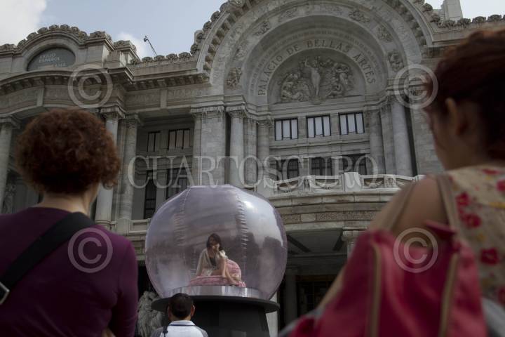 MÉXICO, D.F., 22JUNIO2014.- Como una forma de homenaje al periodista y escritor Efraín Huerta, en una esfera una mujer realizo la lectura de varios poemas del escritor, a las afueras del Palacio de Bellas Artes. FOTO: GUILLERMO PEREA /CUARTOSCURO.COM