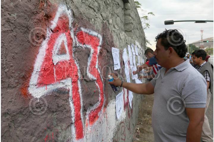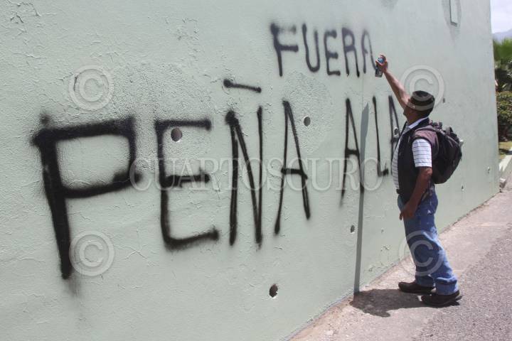 OAXACA, OAXACA, 05NOVIEMBRE2015.- El juez segundo de distrito de Procesos Penales Federales con sede en el Estado de México, dictó auto de formal prisión al maestro de la sección 22 de la CNTE quien es representante del sector Periferia, Othón Nazariega Segura como presunto responsable en la comisión de diversos actos violentos cometidos en el estado de Oaxaca. En la gráfica el profesor realiza pintas durante una marcha en exigencia de la presentación con vida de los 43 estudiantes normalistas de Ayotzinapa. FOTO: ARCHIVO /ARTURO PÉREZ ALFONSO/CUARTOSCURO.COM