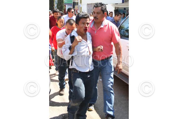 OAXACA, OAXACA, 05NOVIEMBRE2015.- El juez segundo de distrito de Procesos Penales Federales con sede en el Estado de México, dictó auto de formal prisión al maestro de la sección 22 de la CNTE quien es representante del sector Periferia, Othón Nazariega Segura como presunto responsable en la comisión de diversos actos violentos cometidos en el estado de Oaxaca. En la gráfica el profesor retiene a un profesor de la sección 59 quien fue golpeado por otros maestros luego de haber descalabrado a un integrante de la CNTE. FOTO: ARCHIVO /ARTURO PÉREZ ALFONSO/CUARTOSCURO.COM