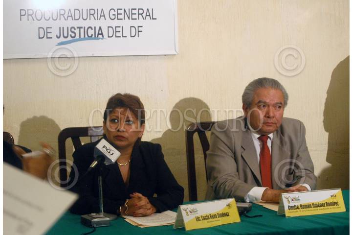 MÉXICO D.F. 07SEPTIEMBRE2007.-Lucia Rezá Jiménez del Ministerio Público y Ramón Jménez Ramiírez comandante de la PGJDF, en conferencia de prensa dieron a conocer la detención de Jonathan Salcedo Sandoval o Julio Hernández Tepalcátl de 25 años y Efrén Hernández Martínez de 47 años, ambos sujetos presuntamente realcionados con el inteto de robo al Subprocurador de Procesos Muiguel Ángel Mancera Espina, el pasado 1 de septiembre. FOTO: GUILLERMO PEREA/CUARTOSCURO.COM