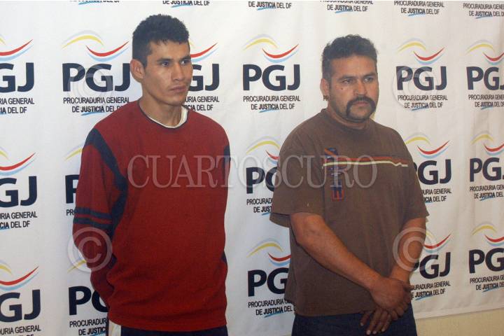 MÉXICO D.F. 07SEPTIEMBRE2007.-Se llevo acabo la presentación de Jonathan Salcedo Sandoval o Julio Hernández Tepalcátl de 25 años y Efrén Hernández Martínez de 47 años, ambos sujetos presuntamente realcionados con el inteto de robo al Subprocurador de Procesos Muiguel Ángel Mancera Espina, el pasado 1 de septiembre, esto en la instalaciones del PGJDF. FOTO: GUILLERMO PEREA/CUARTOSCURO.COM