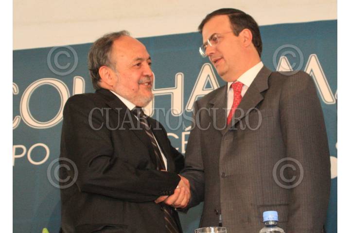 MÉXICO, D.F., 28ENERO2009.- Efrén Ocampo López, Presidente Ejecutivo del Grupo Farmacéutico Neolpharma y Marcelo Ebrard Casaubón, Jefe de Gobierno, durante la inauguración de la primera planta citada farmacéutica, ubicada en la delegación Azcapotzalco, en la zona industrial de Vallejo, la cual generará 545 empleos directos para beneficio de los capitalinos. FOTO: CUARTOSCURO.COM