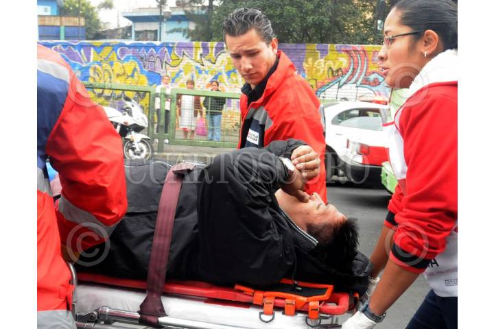 MÉXICO, D.F., 05FEBRERO2009.- El luchador Efren Tiburcio Lopez de 24 años de edad quien se impacto en la parte trasera de un camion de la ruta 118 placas 1180015 cuando circulaba abordo de su auto Pointer placas 991-UGC de color blanco sobre Eje 1 Norte y Av. del Trabajo en la colonia Morelos; mismo que fue trasladado al Hospital Alvaro Obregon por las lesiones que presentaba. FOTO: JULIETA MORA/CUARTOSCURO.COM