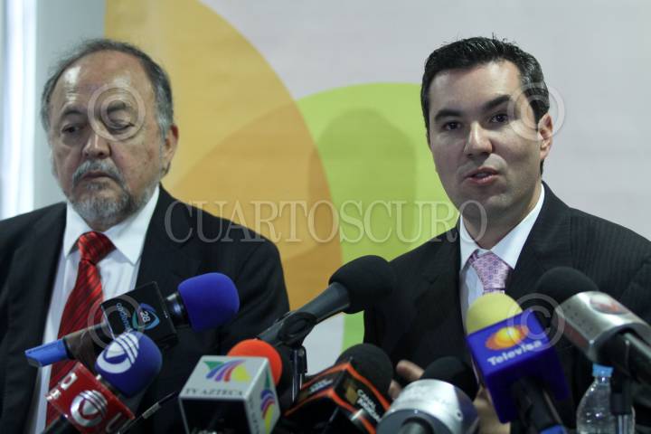 MÉXICO, D.F., 25AGOSTO2010.- Efren Ocampo López, presidente de CANIFARMA y Miguel Ángel Toscano Velasco, presidente de la Comisión Federal para la Protección contras Riesgos Sanitarios, ofrecieron una conferencia de prensa en la cual anunciaron cero tolerancia para ninguna farmacia que venda antibióticos sin receta médica. FOTO: MOISÉS PABLO/CUARTOSCURO.COM