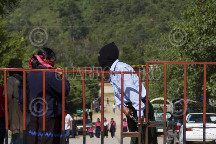 OVENTIC, CHIAPAS, 09AGOSTO2013.- Cientos de indígenas zapatistas del Ejército de Liberación Nacional (EZLN), el Caracol de Oventic y la Junta de Buen Gobierno (JBG) "Corazón Céntrico de los Zapatistas delante del Mundo", se preparan para festejar los 10 años del autogobierno de las JBG con actividades culturales, deportivas, musicales y políticas. Después de que en 2002 fue rechazada la propuesta de legalización de los Acuerdos de San Andrés por parte de los tres poderes en México (Ejecutivo, Legislativo y Judicial), se conformaron las JBG y los 5 Caracoles Zapatistas en territorio recuperado por el EZLN. El próximo 12 de agosto iniciarán un nuevo esfuerzo organizativo, en conjunto con los adherentes a la Sexta Declaración de la Selva Lacandona, “La Escuelita”, cuyo propósito será mostrar, a quienes lo hayan solicitado durante una semana, el proceso de libertad y autonomía de los zapatistas. FOTO: ADOLFO VLADIMIR /CUARTOSCURO.COM FOTO: ADOLFO VLADIMIR /CUARTOSCURO.COM