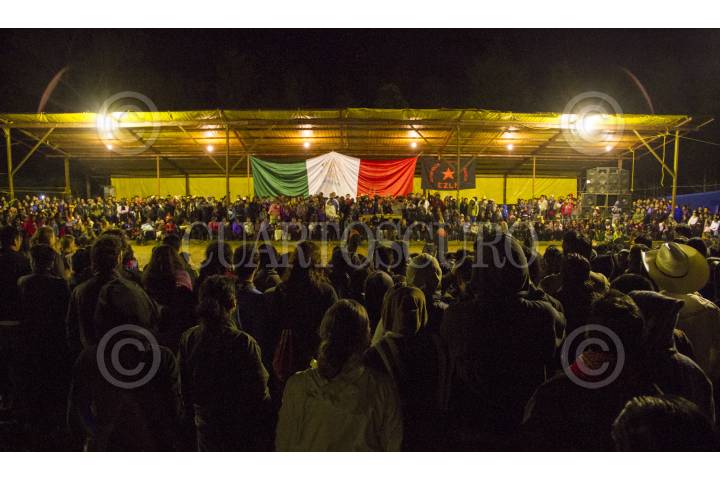 OVENTIC, CHIAPAS, 11AGOSTO2013.- Aspectos de la fiesta y actividades culturales que se realizaron en el Caracol II "Corazón Céntrico de los Zapatistas delante del Mundo", como parte del décimo aniversario de creación del gobierno autónomo zapatista. Durante tres días consecutivos los cinco Caracoles Zapatistas (Oventic, Garucha, Roberto Barrios, Morelia y La Realidad) realizaron dichos eventos para festejar y dar paso a la llamada "Escuelita". Después del rechazo por los tres poderes en México en 2002 (Ejecutivo, Legislativo y Judicial), para hacer ley los Acuerdos de San Andrés, el 08 de agosto de 2003, en territorio recuperado por el Ejército Zapatista de Liberación Nacional (EZLN), dio inicio la construcción de las Juntas de Buen Gobierno y los Caracoles Zapatistas. FOTO: ADOLFO VLADIMIR /CUARTOSCURO.COM