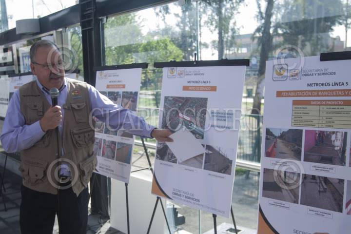 MÉXICO, D.F., 18JUNIO2013.- Luis Alberto Rábago Martínez, secretario de Obras y Servicios del Distrito Federal, durante un recorrido por la estación 5 de Mayo del Metrobus de la Linea 5; esta estación es la primera concluida al cien por ciento y la obra actualmente tiene un avanze total de 42 por ciento. FOTO: RODOLFO ANGULO /CUARTOSCURO.COM