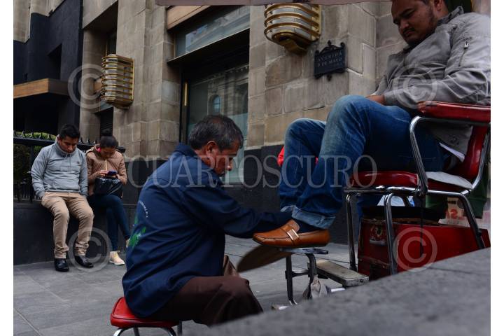 MÉXICO, D.F., 05ENERO2016.- Escena cotidiana de la Ciudad de México, un bolero realizando su trabajo, mientras una pareja de jóvenes disfrutan de la tarde. FOTO: ISABEL MATEOS /CUARTOSCURO.COM