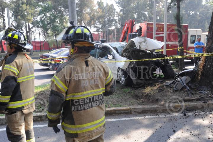 CIUDAD DE MÉXICO, 30JULIO2017.- Un hombre que viajaba como copiloto falleció cuando el automóvil se impactó contra un árbol, en el Eje Plutarco Elías Calles y Sur 131, de la Colonia Ramos Millán, además se reportaron 4 personas lesionadas. FOTO: ARMANDO MONROY /CUARTOSCURO.COM
