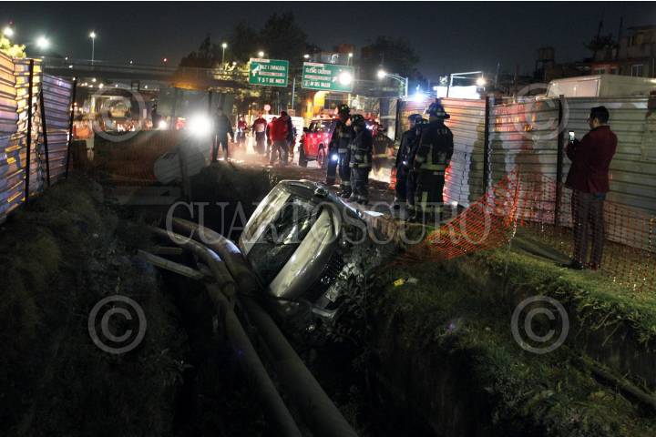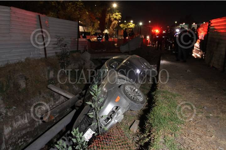Un vehículo cayo en una zanja de obras que se realizan en Eje 3 Oriente