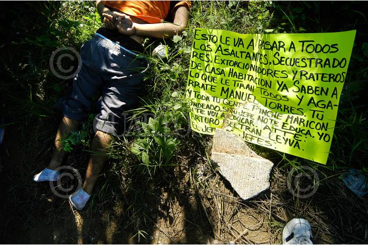 ACAPULCO, GUERRERO, 06NOVIEMBRE2009.- Ejecutan de 6 impactos de bala con el tiro de gracia y torturan a un joven de aproximadamente entre 20 y 25 Años de edad en el poblado de Coyuca de Benítez en el lugar conocido como los Bajos del ejido sobre la carretera Acapulco - Zihuatanejo. FOTO: BERNANDINO HERNANDEZ/CUARTOSCURO.COM