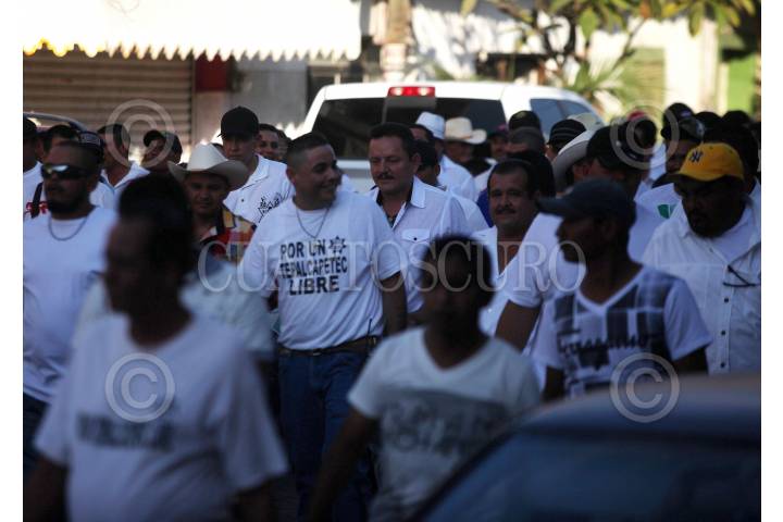 TEPALCATEPEC, MICHOACÁN. 24FEBRERO2016.- 500 personas marcharon por las principales vialidades de la cabecera municipal, entre ex miembros de la autodefensa, estudiantes y población civil, compusieron la caminata celebre que conmemora el tercer aniversario de el levantamiento en armas en contra del cártel de los Caballeros Templarios. Entre los asistentes se encontraba el Comandante Tilín, uno de los primeros alzados junto con quién se piensa es el creador de las autodefensas, Juan José Farías, alias El Abuelo. FOTO: ALAN ORTEGA /CUARTOSCURO.COM