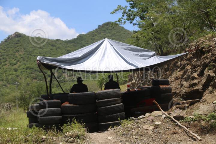 TEPALCATEPEC, MICHOACÁN, 13AGOSTO2019.- Después de que esta mañana, comenzara a circular en las redes sociales, un video en donde El Cartel Jalisco Nueva Generación CJNG, le declara la guerra a Juan José Farias alias el "Abuelo", el exautodefensa, elementos de la Policía Michoacán y Municipal revisan sobre la carretera Tepalcatepec-Jilotlán de los Dolores a la altura del crucero Cholula. En 2013, “El Abuelo” participó en los grupos de civiles armados que se autoproclamaron como guardias comunitarias o autodefensas. En ese movimiento, ganó mayor notoriedad y mayor respaldo de la población de esa región, principalmente, en el municipio de Tepalcatepec. FOTO: JUAN JOSÉ ESTRADA SERAFÍN /CUARTOSCURO.COM