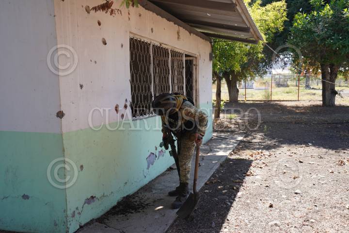 Elementos del Ejército Mexicano entraron este día a la comunidad del Aguaje, en el municipio de Aguililla, al entrar dieron testimonio de un pueblo abandonado, en donde inmuebles como en la escuela primaria se observaban impactos de bala.