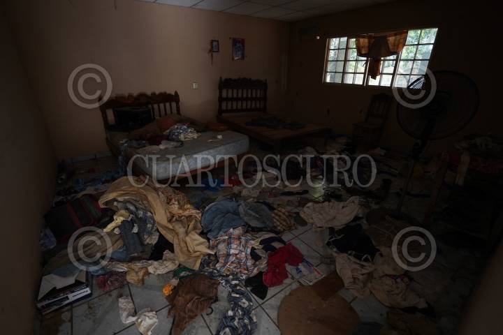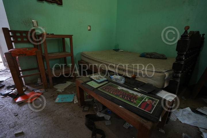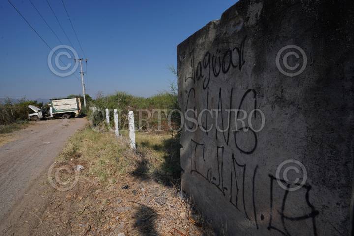 En la imagen se observan las siglas del CJNG 8Cartel Jalisco Nueva Generación), en una de las casas de la comunidad del Aguaje, la cual fue recuperada por Elementos del Ejército Mexicano.