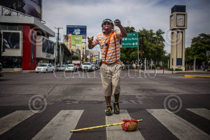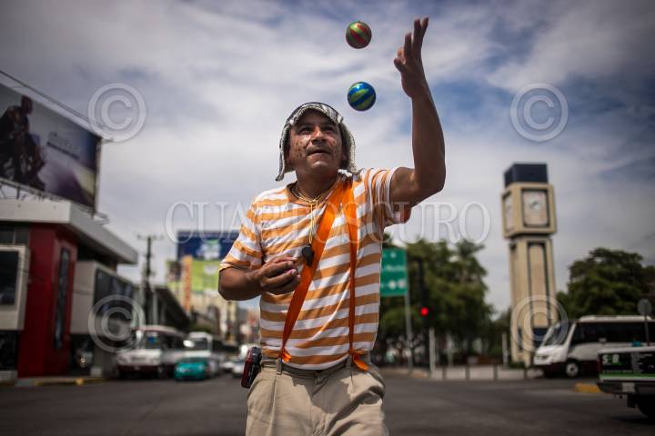 CULIACÁN, SINALOA, 19MARZO2015.- Luis mejor conocido como ¨El Chavo¨ se gana la vida realizando malabares con sus 3 pelotas en la avenida Álvaro Obregón, oficio que ejerce desde los 12 años. Menciona que es un trabajo duro pero la necesidad de mantener a su familia lo obliga a salir a la calle en busca de sustento. FOTO: RASHIDE FRIAS /CUARTOSCURO.COM
