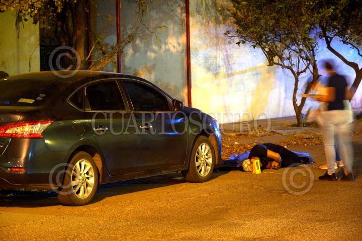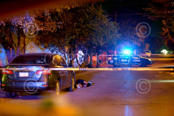 CULIACÁN, SINALOA, 21ABRIL2019.- Un joven a quien señalan de ser un presunto ladrón, fue asesinado a balazos por una de las calles del fraccionamiento Valle Dorado, al norte de la ciudad. La víctima, identificada como Francisco Javier, alias "El Cholo", de 35 años, el cual vestía pantalón de mezclilla negro, playera negra y tenis negros de la marca Adidas. También portaba una cachucha camuflada. Además, peritos localizaron entre las pertenencias del joven un cuchillo de cocina. El crimen se registró alrededor de las 21:35 horas, sobre la calle Ballena Gris, casi esquina con el bulevar Rolando Arjona, al norte de la ciudad. La víctima supuestamente salió de su casa y caminaba con rumbo al bulevar cuando fue perseguido por sujetos armados que viajaban en una camioneta. "El Cholo" corrió, pero los gatilleros empezaron a dispararle con pistolas calibre 9mm. Vecinos comentaron que desde hace mucho tiempo El Cholo traía en jaque a los vecinos del fraccionamiento Valle Dorado, Santa Anita y La Conquista, entre otros, por los constantes robos que cometía en las casas. Dijeron que apenas hace tres días fue perseguido a balazos durante la madrugada, cerca de su casa, aparentemente por intentar robar en una residencia de ese sector. Peritos localizaron 9 casquillos percutidos calibre 9mm en la escena del crimen. También al revisar el cuerpo de la víctima, le hallaron un cuchillo. FOTO: JUAN CARLOS CRUZ /CUARTOSCURO.COM