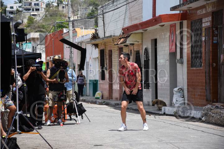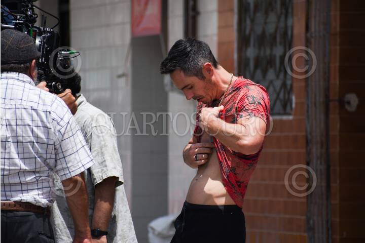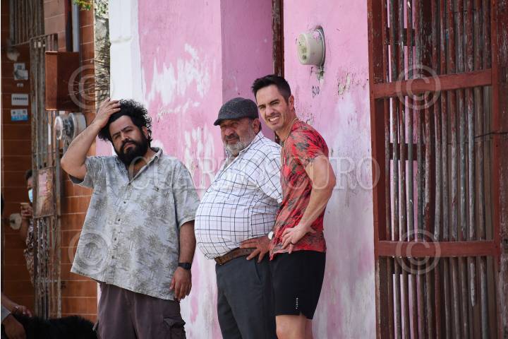 Mauricio Ochmann y Mauricio Barrientos (El Diablito) durante la grabación de la serie Las Bravas, en Lerma, Campeche.