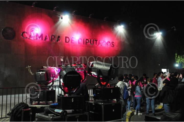 Integrantes de organizaciones civiles iluminaron de rosa la fachada de la Cámara de Diputados previo a la discusión de la Reforma Electoral.