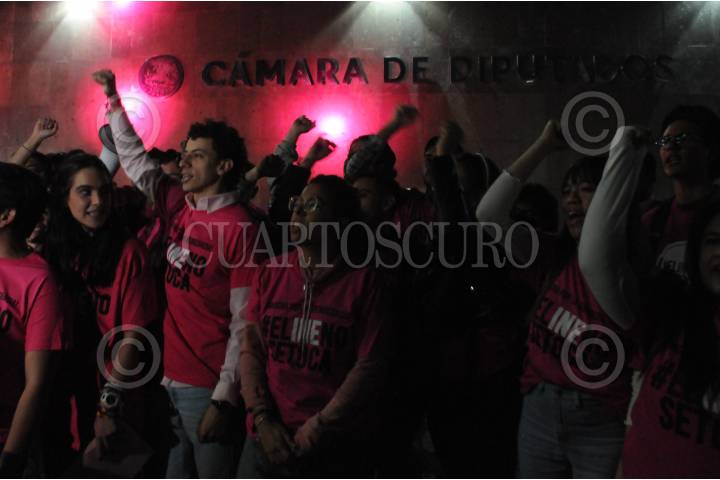 Jóvenes integrantes de organizaciones civiles se manifestaron afuera de la Cámara de Diputados.
