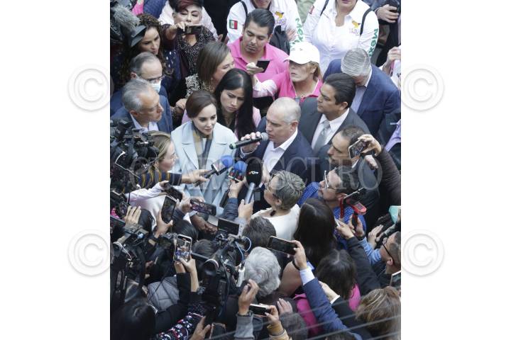 Integrantes de los gurpos parlamentarios del PAN y Plural conversaron con los manifestantes que se oponen a modificaciones en las leyes secunfarias en el INE.